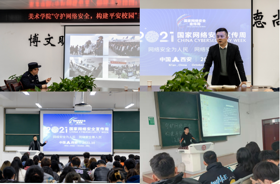 专题学习,强化网络安全意识。组织师生认真学习习近平总书记关于网络强国和网络安全的重要论述;观看由网信处制作的反诈宣传片;邀请宝鸡市公安局高新分局反诈民警葛金玉为师生做“网络安全进校园”专题讲座,系统介绍了网络个人信息保护、常见电信网络诈骗手法、网络犯罪规律,分析了典型案例,提出了防范策略,切实增强师生网络安全意识,有效提升网络安全防护技能。