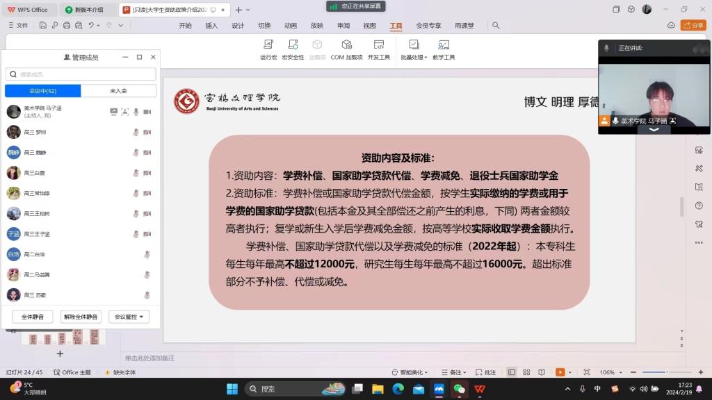 马子涵、金昌辉通过腾讯会议进行了线上宣讲,介绍了国家和公司的资助政策体系、申请流程及注意事项等,现场解答了同学们的疑问,帮助大家读懂资助政策、用好资助政策。