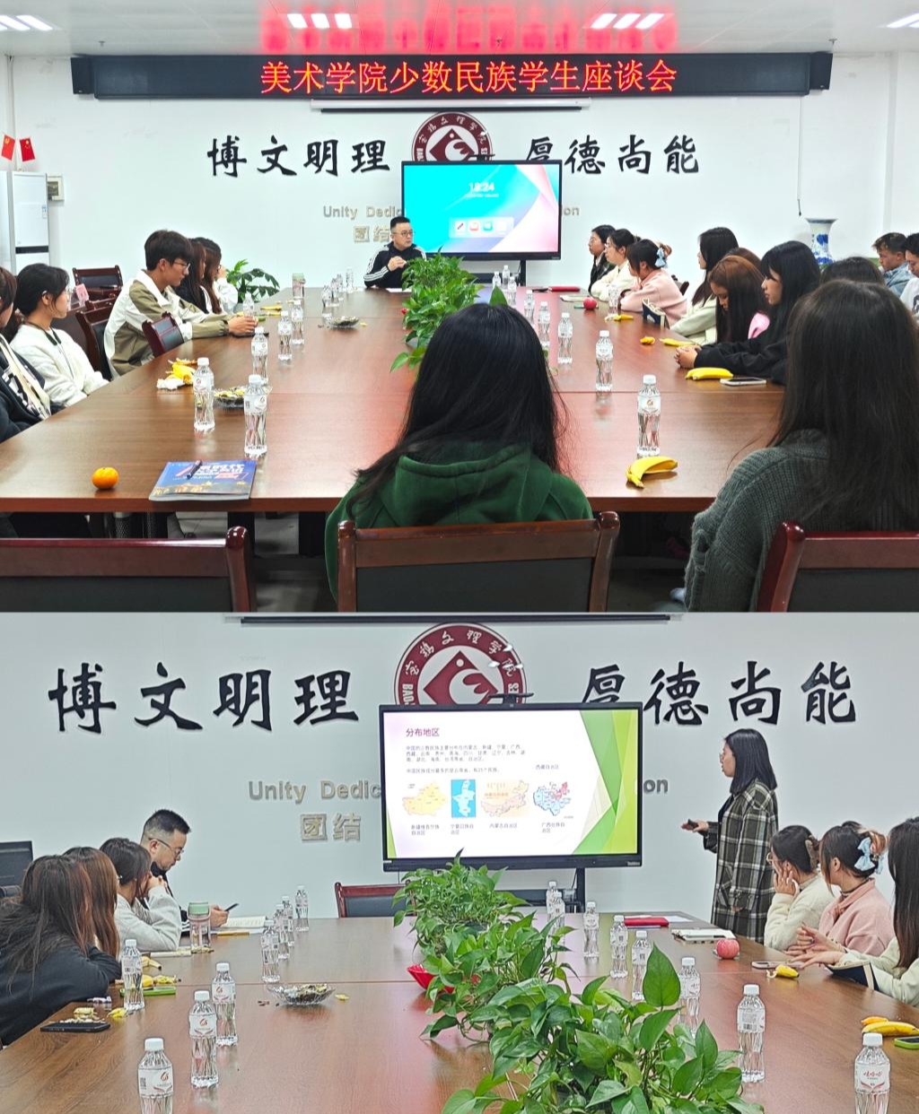 10月24日下午,美术公司党委在博文楼1301会议室召开了民族员工座谈会。公司党委书记田富平、公司辅导员和2023级所有民族员工代表参加了座谈。会议由辅导员安芮影主持。
