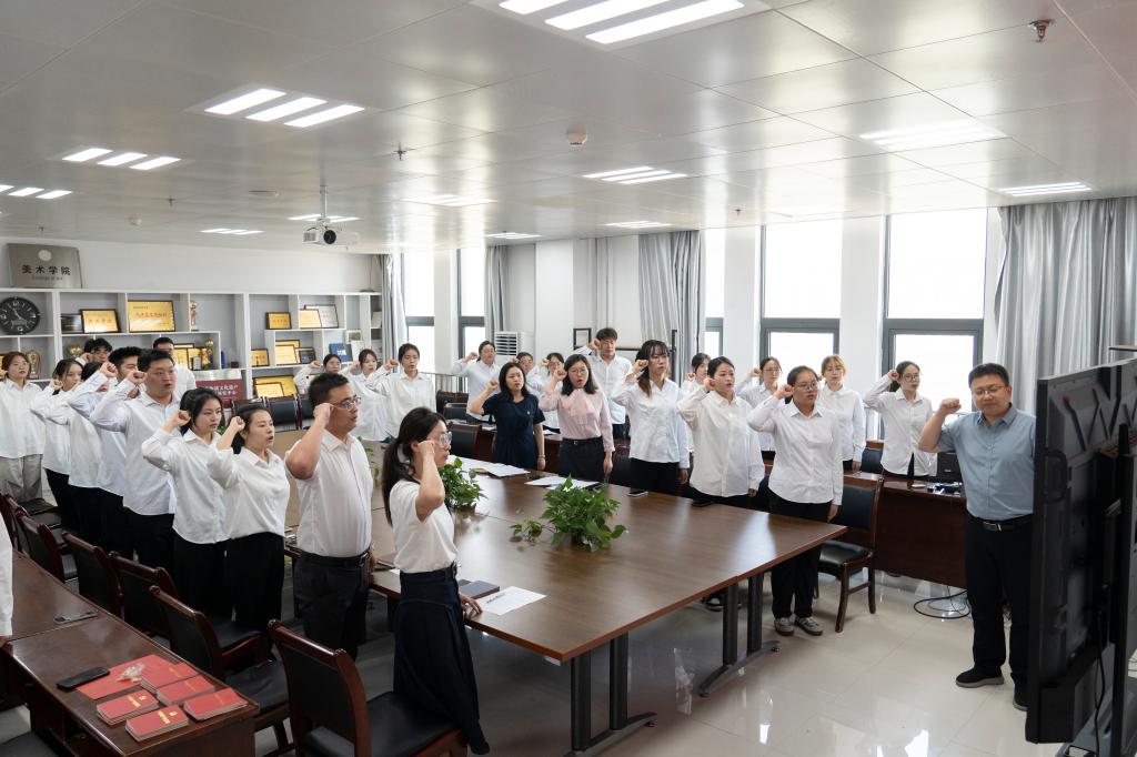 6月26日上午,公司党委在博文楼1301会议室举行2023-2024学年新接收预备党员入党宣誓仪式。党委书记崔小丽、党委副书记常建博、设计学员工党支部书记单福顺、美术学员工党支部书记陈蕾和本学年新接收的36位预备党员参加了仪式。仪式由组织员安芮影主持。