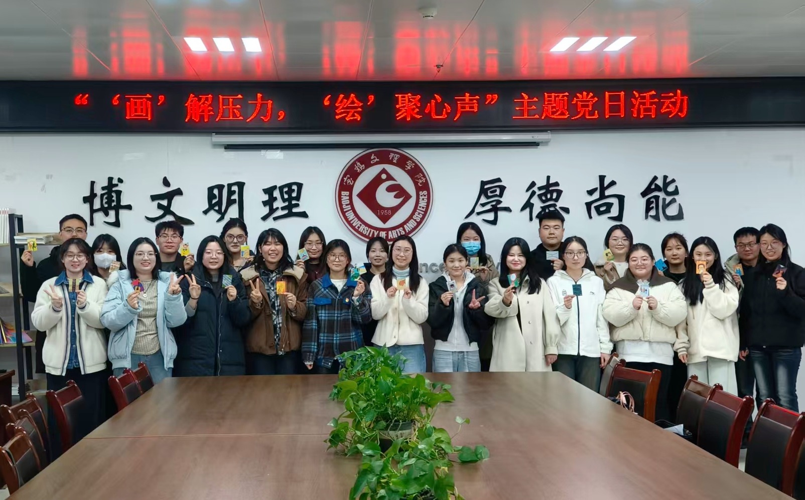 11月26日晚,美术学员工党支部在博文楼1301会议室开展“‘画’解压力,‘绘’聚心声”主题党日活动。支部全体成员参与了活动。