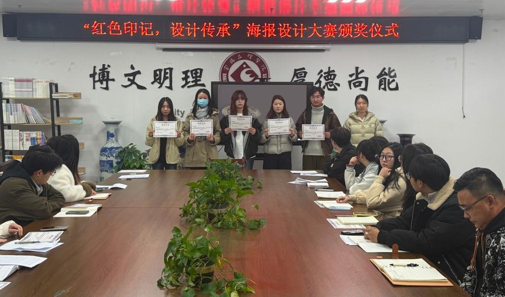 12月1日晚,艺术设计员工党支部在博文楼1301会议室举行“红色印记·设计传承”海报设计大赛颁奖仪式。仪式由支部书记单福顺主持。