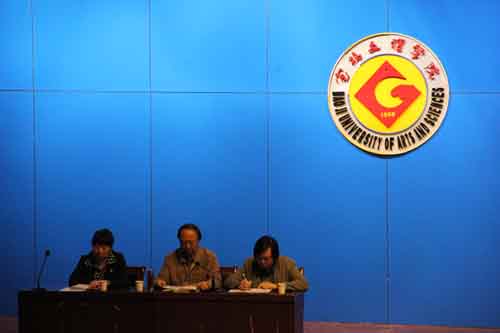 专题讲座上,美术系党总支书记唐晓育根据美术系的教风、学风以及美术系员工的特点,对大一新生提出了几点要求和希望,指出在校学习和生活期间不能撞的四条红线,期望他们做适应老员工活的美术人。系主任刘进锁从专业学习和教学管理的角度,一方面为新生讲了best365中国官方网站的历史沿革和美术系的成立与发展,另一方面希望美术系的同学在校期间培养品德高尚、专业知识技能精湛、学风严谨、目标远大的“德艺双馨”的美术人。系副主任王宝强从人类生存的至高境界和最终追求,要求美术系员工培养艺术家的求索精神和树立正确的艺术关,从而纠正社会上对学艺术之人的悲观态度;同时,他从学科设置层面对同学们大学四年的学业安排做了具体的说明。