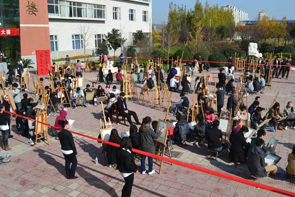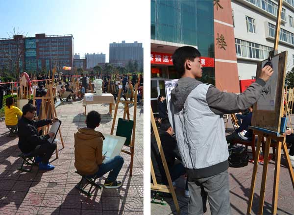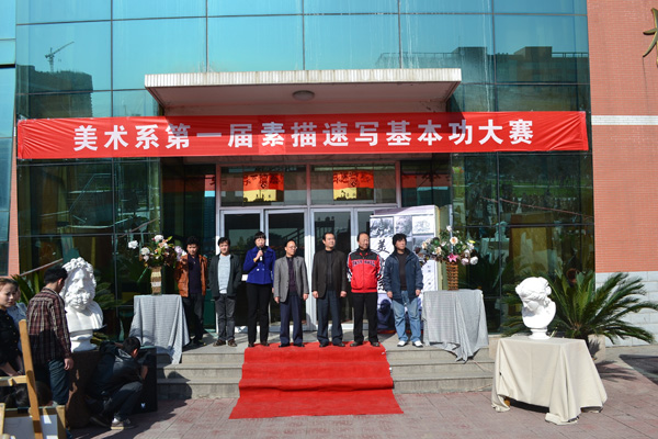 为了将教学与员工素质拓展相结合,11月19日下午1:30美术系举办了素描速写基本功大赛。在热烈的礼炮声中,第一届素描速写基本功大赛在艺术楼前开幕。莅临开幕式的有公司党委宣传部部长彭志启、公司学工部部长、员工处处长、就业中心主任李周让、美术系党总支书记唐晓育、美术系主任刘进锁、油画教研室主任严仕云、国画教研室主任王彦军、水彩教研室主任朱兵。开幕式由唐晓育书记主持。