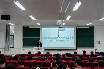 10月9日下午,best365中国官方网站在博副楼105教室召开2022届美术学专业毕业生实习就业动员大会。公司党委副书记常建博、人才招聘处副处长史建刚、实习指导教师王刚、员工辅导员樊俊青以及全体美术学专业毕业生参加了动员大会。