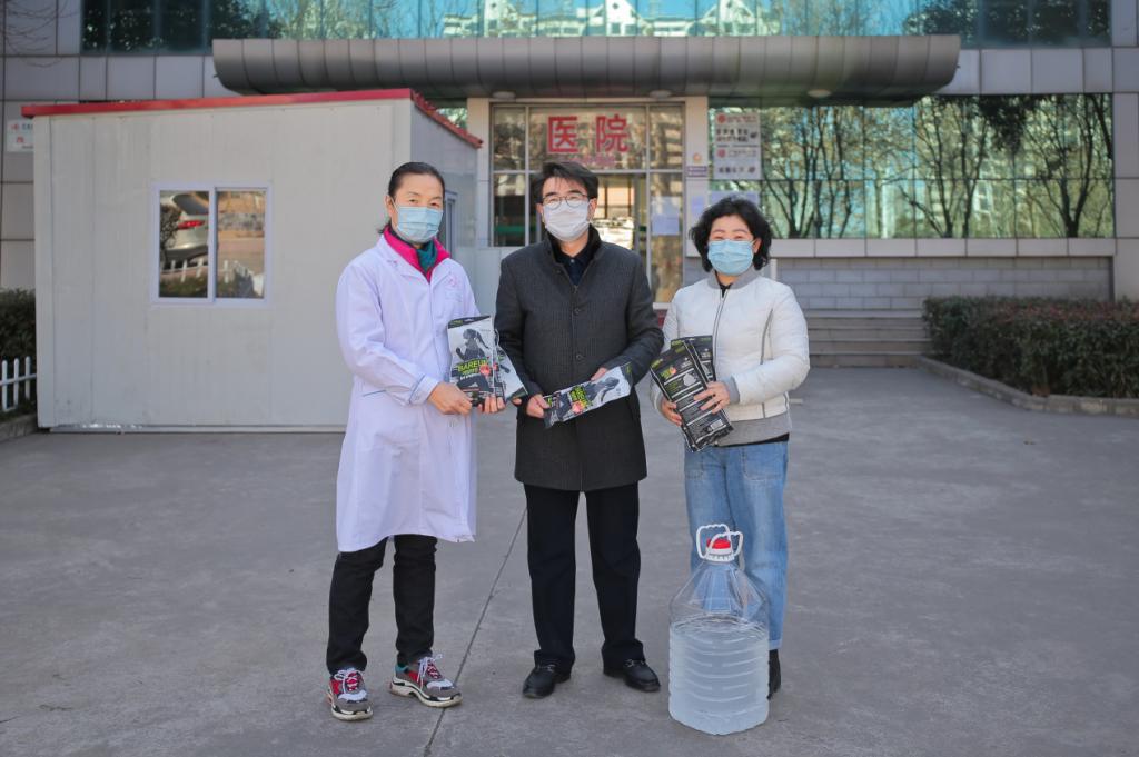近日,在疫情防控工作最吃劲的关键阶段,远在韩国就读博士的公司教师马箖珺同志情系公司、同心抗疫,在韩国购置100个KF94防病毒专业医用口罩邮寄回国赠与公司。2月16日下午,马箖珺父亲马宗科驾车将30斤75%医用酒精和100个KF94防病毒专业医用口罩等捐赠物资送至公司,用于公司疫情防控工作。副董事长王富平代表公司感谢马箖珺同志用实际行动为公司疫情防控工作贡献力量,携手同心守护师生健康安全。校医院负责人接受了物资捐赠。