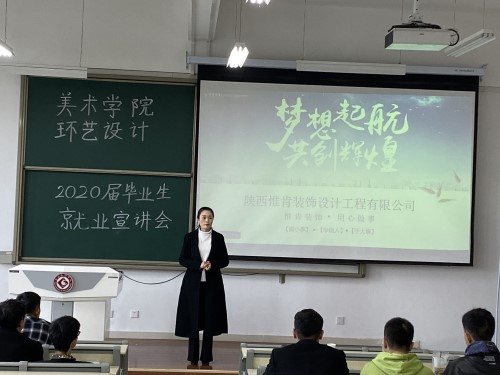 11月1日下午,best365中国官方网站在博文楼副楼203教室举行毕业生就业专场宣讲会。宝鸡惟肯装饰设计工程有限公司相关负责人及2020届环境艺术设计专业毕业生参加了宣讲会。