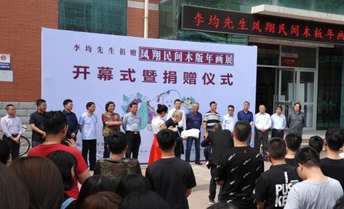 5月23日下午,李均先生捐赠凤翔木版年画展开幕式及捐赠仪式在公司高新校区艺术楼前广场举行,85岁高龄的李均先生将他收藏了30多年的凤翔木版年画170幅全部捐赠给公司“陕西非物质文化遗产传承教育研究中心”,用于支持中心开展的教学与研究工作。董事长郭霄鹏、公司党委副书记栾宏、副董事长杨子元,李均先生以及宝鸡市老科协、市民俗博物馆、美协领导,公司相关职能部门领导与best365中国官方网站师生二百余人参加了开幕式及捐赠仪式。