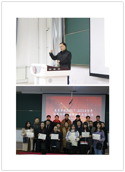 讲座结束后,美术公司党总支隆重表彰了梁帅等9名优秀心理健康联络员、杨云浩等4名心理健康工作特别贡献者,希望全体与会人员学习先进、争当先进,积极宣传心理健康知识,努力做好本职工作,为维护同学们心理健康、构建和谐校园做出更大的贡献。(美术公司党总支文/王小敏)