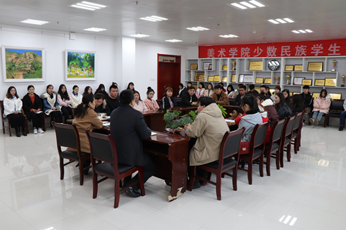 为深入了解少数民族员工在校学习生活情况,促进各民族员工间的沟通交流和文化交融,11月12日下午,美术公司党总支在公司会议室召开了少数民族员工座谈会。公司党总支书记王永琪、党总支副书记常建博、辅导员和所有少数民族员工参加了座谈会,座谈会由辅导员任亚莉主持。