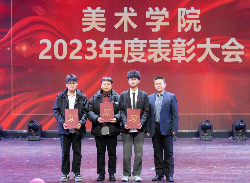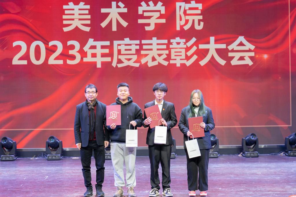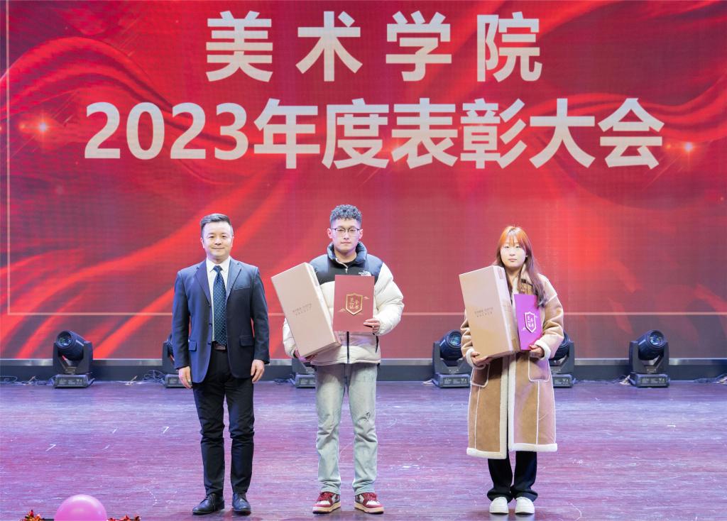 在表彰大会上,美术公司党委副书记、经理李强宣读表彰决定,公司党政领导分别为公司2022-2023学年国家奖学金、国家励志奖学金、“镌刻英雄偶像 心印红色基因”——红色文化进校园进社区暨版画作品展、公司新闻宣传贡献奖获奖者代表颁发了证书和奖品,国奖获得者梁智超同学作了发言。