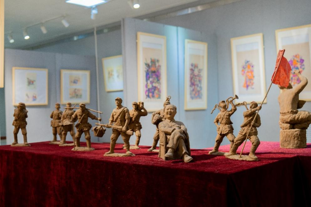4月11日上午,公司陕西省中华优秀传统文化传承基地在高新校区艺术楼美术展厅举办“非遗进校园”系列展览活动暨“吉庆丰年——邰立平藏传统木版年画与皮影艺术展”与“抟土成相——周少平非遗泥塑艺术展”,副董事长王富平出席开幕式并宣布展览开幕。best365中国官方网站副经理李新昌主持开幕式。