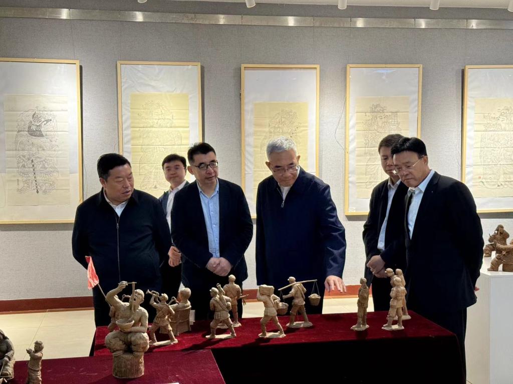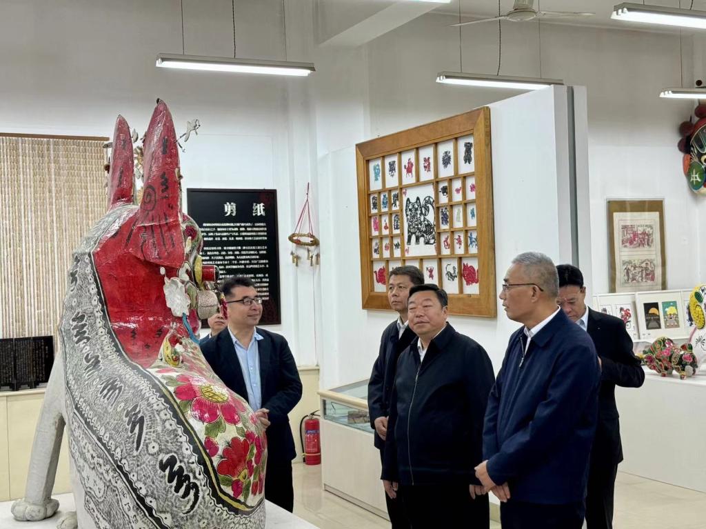 4月18日下午,宝鸡市政协主席刘其智来公司调研指导工作,公司党委书记赵健、公司党委副书记韩干校陪同刘其智主席来到best365中国官方网站宝鸡民间美术展厅以及美术展厅“非遗”进校园展览进行参观指导,市政协秘书长朱小强、公司党委统战部长郝晓炜一同参加调研。