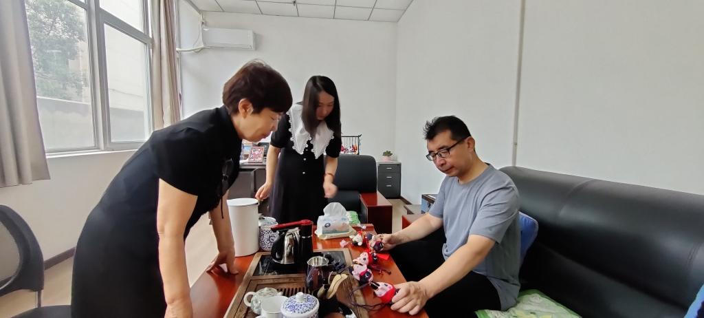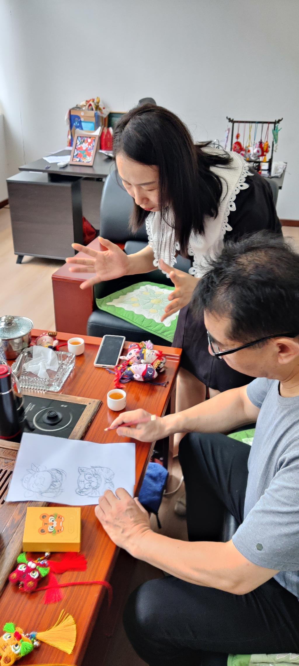 李强经理一行此次是应陕西天秀服饰有限公司总经理艾苗邀请,前往天秀公司进行产品创新设计的咨询与帮扶的。在设计室与展品陈列室了解了创新产品研制的情况与新产品类型,针对之前公司员工设计的一款“猪八戒”香包与车饰挂件等产品提出改进和完善的建议,又针对新研发产品在造型设计与工艺上进行指导。艾苗总经理代表公司向李强经理一行给予的帮助表示感谢,双方将在产品创新与市场推广方面进一步推进合作,在互惠互利中不断深化校企合作。