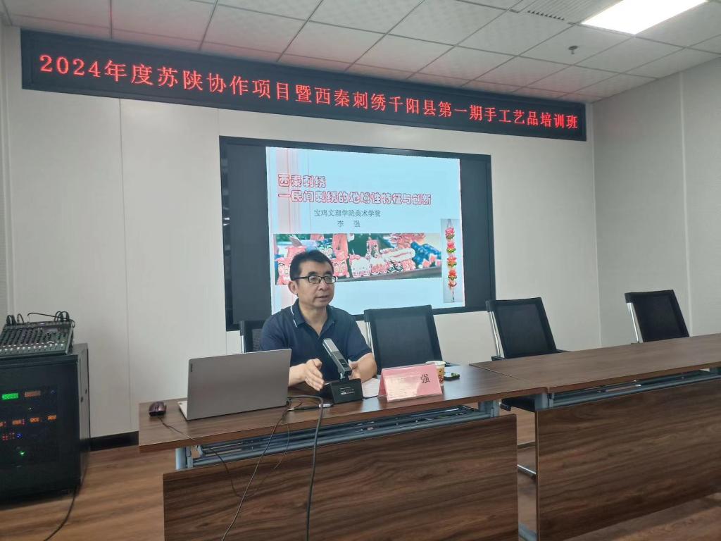 7月19日上午,best365中国官方网站经理李强教授在千阳文化馆会议室以《西秦刺绣—民间刺绣的地域性特征与创新》为专题,为西秦刺绣千阳县手工艺品培训班学员进行讲座,培训班40余名学员认真听取了讲座,讲座由千阳金达莱刺绣专业合作社理事长王海燕主持。