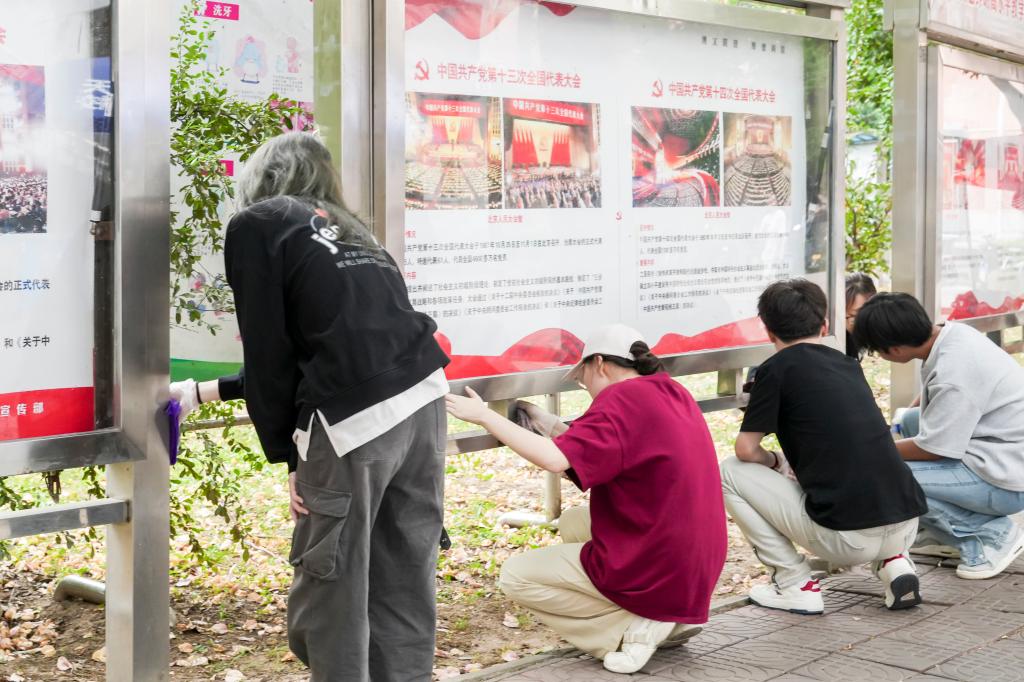 活动过程中,同学们齐心协力,分工明确,手持扫帚、抹布、水桶等劳动工具分别前往立心楼、图书馆南广场、田径场和餐厅北门等清洁区域。在立心楼,员工们细心地打扫着自习教室的每一个角落,从地面到桌面,从窗户到黑板,力求为师生们营造一个干净、整洁的学习环境。同时,他们还主动承担起擦亮校园宣传栏的任务,一块块原本略显黯淡的宣传板在同学们的努力下焕发出新的光彩。