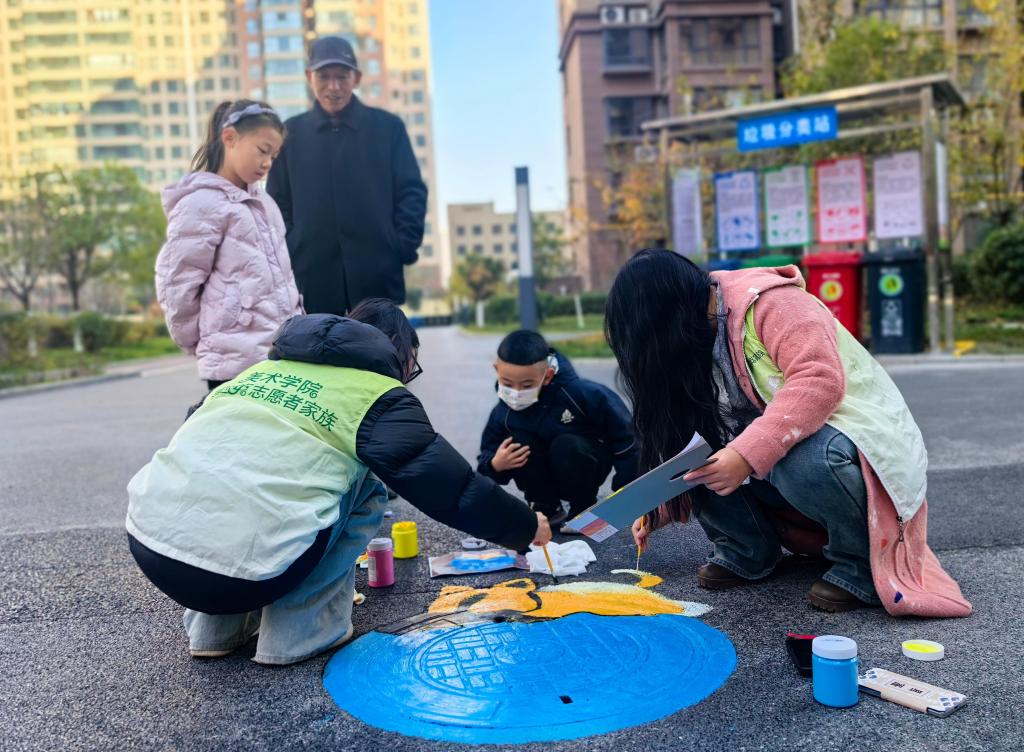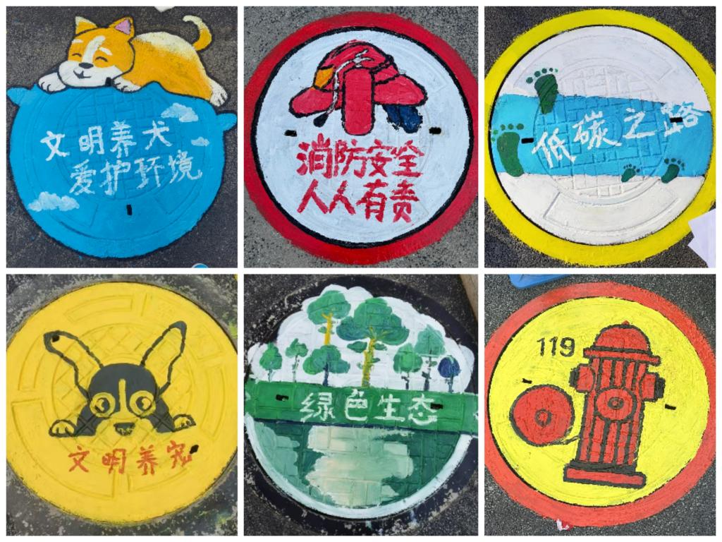 活动中,志愿者们手持画笔,现场调色、构图,以井盖为画布,认真勾勒图案,填充颜色,并涂鸦垃圾分类、文明养犬、爱护环境等宣传画,用巧手将彩绘文化谱写在小区每个角落。随着一幅幅五彩斑斓的彩绘作品呈现出来,一个个不起眼、黑漆漆的井盖,披上了各种宣传文明理念的彩色外衣,瞬间变成“景盖”,吸引了不少居民驻足观赏。