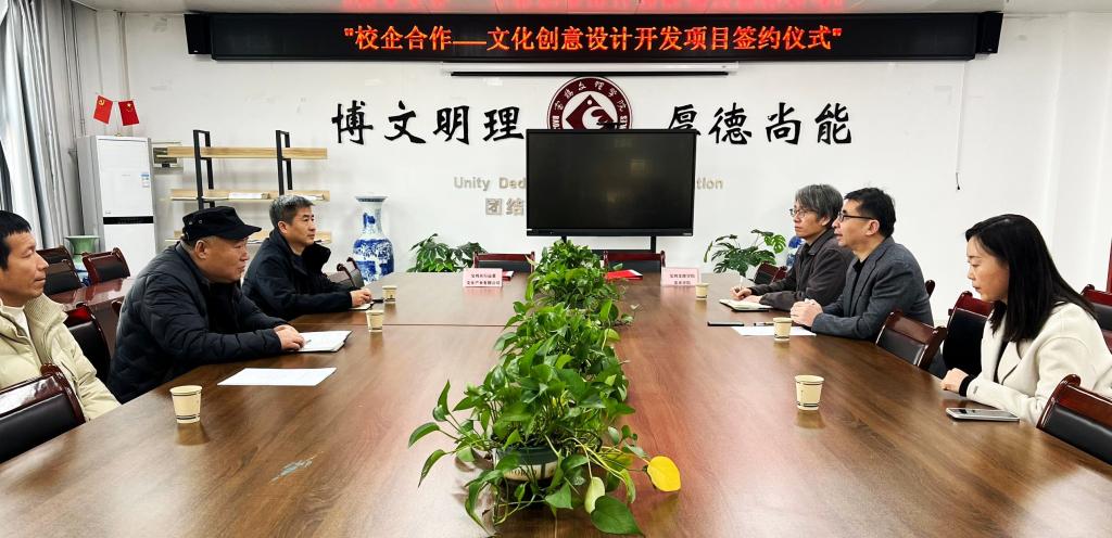 12月26日上午,宝鸡众行远景文化产业有限公司总经理张陇堂、市场部总监王皓一行与best365中国官方网站开展校企合作文创开发项目签约,best365中国官方网站经理李强、副经理李新昌及相关专业教师参加活动。