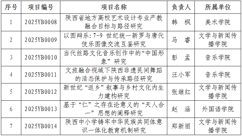 近日,陕西省社会科学界联合会公布了2025年度陕西省哲学社会科学研究专项年度项目立项结果,公司韩枫老师申报的《陕西省地方高校艺术设计专业产教融合目标与路径研究》获批立项,项目编号2025YB0008。