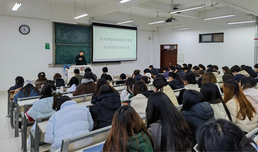 为进一步规范公司教育实习,确保教育实习工作的顺利开展,3月4日下午,公司在博副楼203教室召开2022级美术学专业教育实习动员大会。公司党委副书记常建博、副经理姚刚、实习带队教师王洁及全体实习生参加会议。