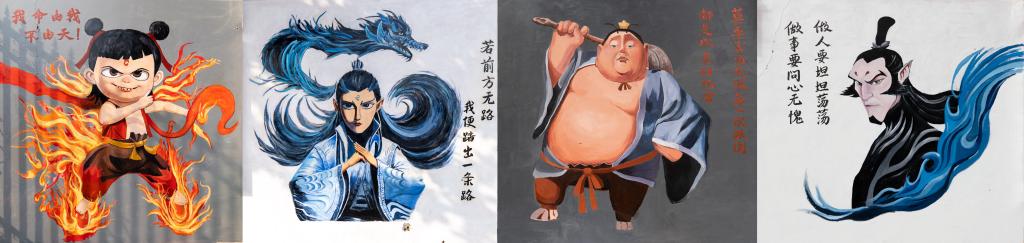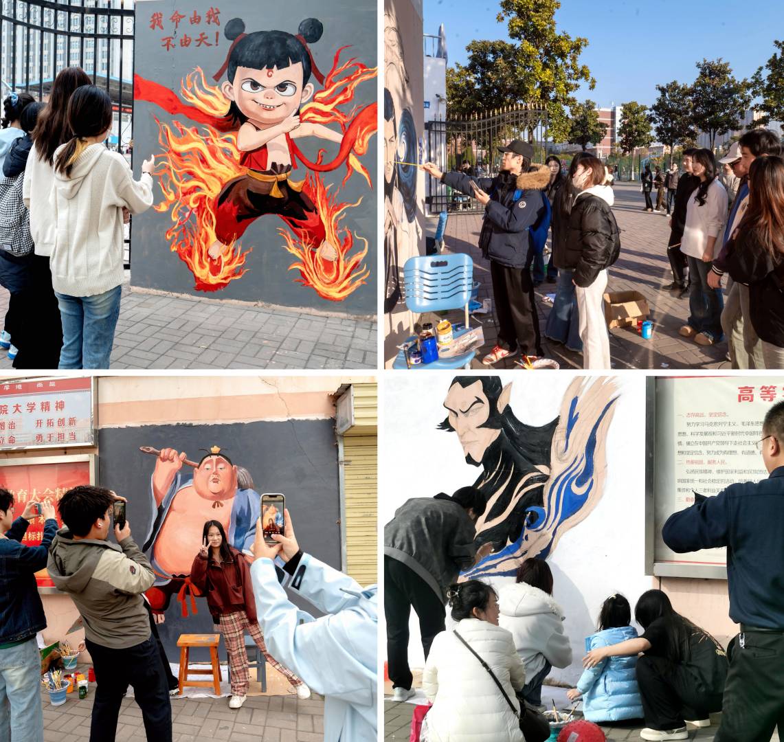同学们以饱满的热情投入到创作中,他们结合自身对传统文化的理解和对国漫的热爱,创作出了一组主题鲜明、形式多样的墙绘作品,让古老神话在校园中焕发出新的生机与活力。哪吒、敖丙等人物形象栩栩如生,将传统元素与现代审美相结合,赋予经典故事新的时代内涵。此次墙绘展示活动不仅为同学们提供了一个展示才华的平台,更是一次难得的传统文化教育契机。同学们在创作过程中,深刻体会到了中华优秀传统文化的博大精深,增强了对民族文化的认同感和自豪感。