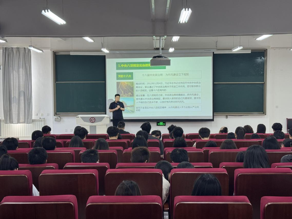 为进一步学习贯彻中央八项规定精神,切实增强师生党员纪律规矩意识,5月29日,校纪委委员、马克思主义公司党总支书记张选朝应邀在博文楼副楼205室为师生党员宣讲中央八项规定精神。地理与环境公司、化学与化工公司师生党员代表共同参与。