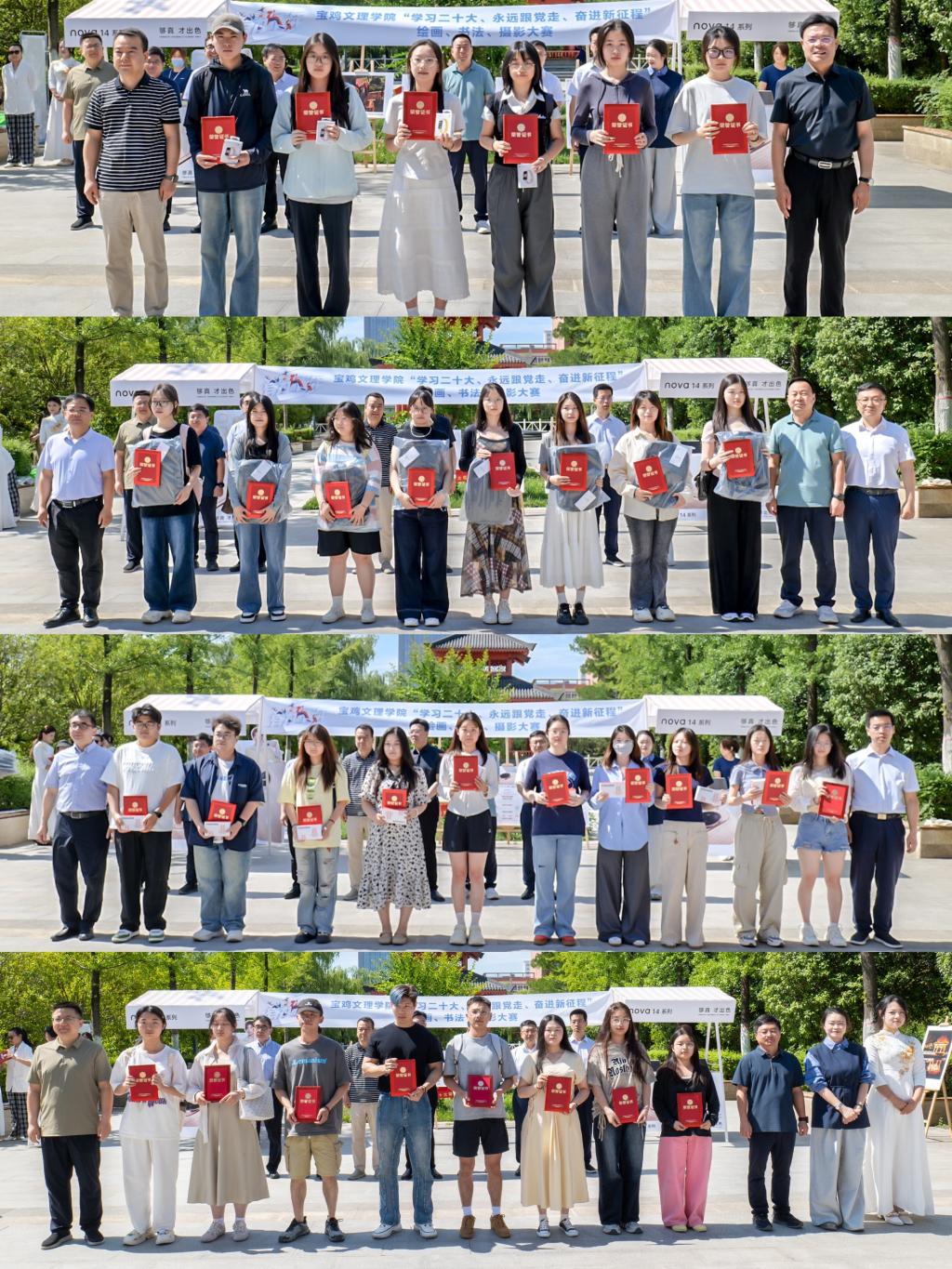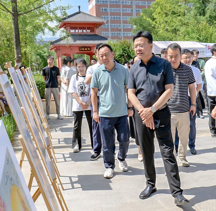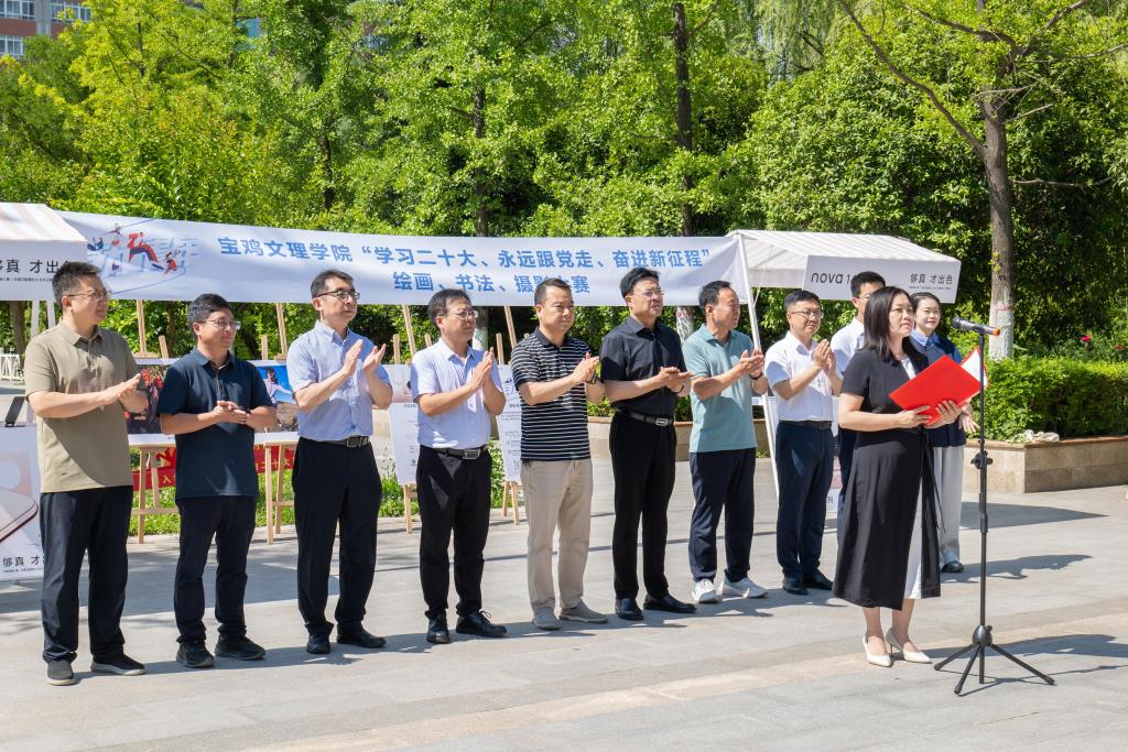 6月5日上午,由校团委主办,best365中国官方网站团委承办的“学习二十大,永远跟党走,奋进新征程”绘画、书法、摄影大赛获奖作品展开幕式在高新校区博文楼前广场举行。公司党委副书记韩干校宣布展览开幕并与合作单位鑫诚通讯器材有限公司总经理王向东一起为获奖员工颁奖。开幕式由美术公司党委书记崔小丽主持。