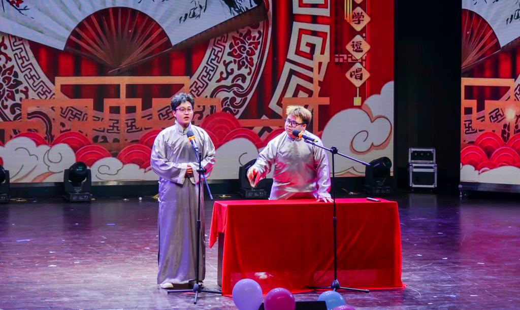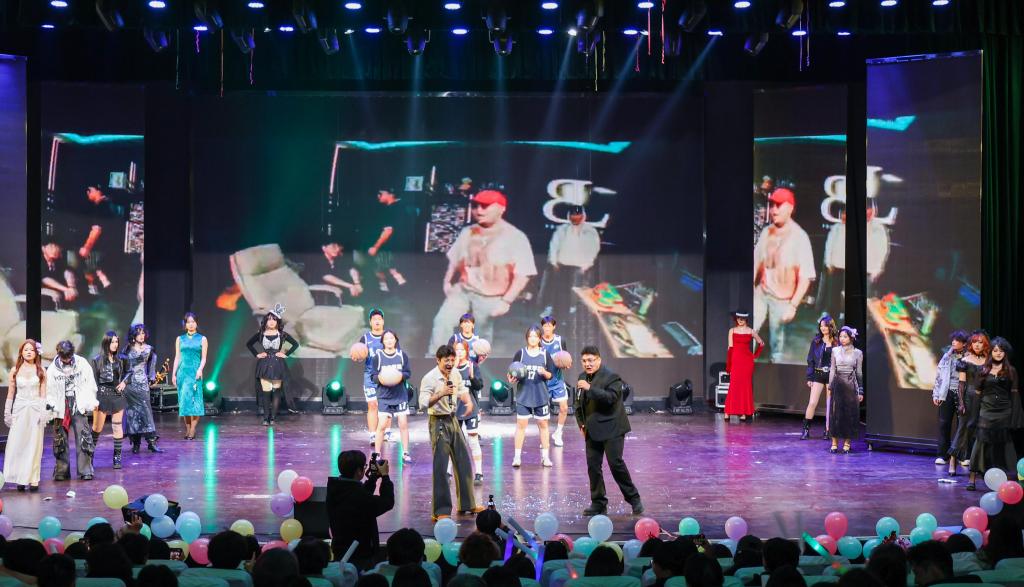 晚会在活力迸发的街舞表演中正式拉开帷幕。舞者们以灵动洒脱的肢体语言、炽热奔放的青春激情,瞬间点燃全场气氛,台下掌声雷动、欢呼不断,随后,各类节目轮番登场、精彩纷呈,为观众呈现了一场全方位的视听盛宴:歌曲《探窗》《后藏姑娘》旋律婉转悠扬,演唱者以细腻深情的声线传递真挚情感,婉转间直抵人心;非遗经典《川剧变脸》神秘莫测,一张张脸谱瞬间切换,尽显中华优秀传统文化的奇幻魅力,相声《有哲理的人》则以诙谐幽默的台词、生动传神的表演,在欢声笑语中传递人生思考;舞蹈《新疆姑娘》轻盈灵动,舞姿蹁跹间展现西域风情,藏族舞蹈《校园锅庄》热情奔放,诠释着民族团结奋进的精神,尽显多元文化交融之美,传递出学子们热爱家国真挚情怀;小品《运动会》和《暖冬维权记》紧扣校园生活热点,以贴近现实的剧情、幽默风趣的演绎引发全场共鸣,在轻松氛围中传递正向价值观;而说唱、T 台秀与体育运动的创意融合,更是以新潮前卫的表现形式惊艳四座,动感的节奏、洒脱的步伐将晚会气氛推高潮,充分展现了best365中国官方网站学子的创新思维与艺术张力。