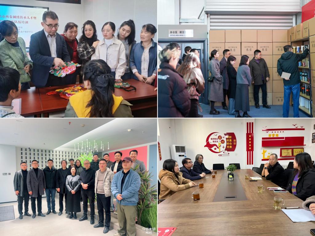 公司班子成员先后赴千阳县和宝鸡多家企业和单位同步开展民间美术调研、培训与访企拓岗工作。在实地考察千阳刺绣产业发展态势过程中,双方就人才输送、文创产品研发等方面达成初步合作共识,为后续校地协同推动非遗文化产业化发展搭建了沟通桥梁。在陕西东吉金属科技股份有限公司与宝鸡广诚建筑装饰设计有限公司,校企双方通过座谈交流、实地考察等形式,重点围绕金属工艺设计、建筑装饰方案设计、空间美学打造等领域展开讨论,从人才培养特色及毕业生技能优势、实习实训基地建设、项目联合攻关等合作方向达成合作意向。在宝鸡高新园林环卫市政建设管理有限公司和宝鸡市新城文化传媒有限公司走访调研时,双方围绕人才培养、岗位需求、实习实训基地建设、校企合作模式创新等核心议题展开深入洽谈,一致表示将以此次走访为契机,进一步深化沟通协作,推动建立长期稳定的校企合作关系,实现人才供给与产业需求的精准匹配。