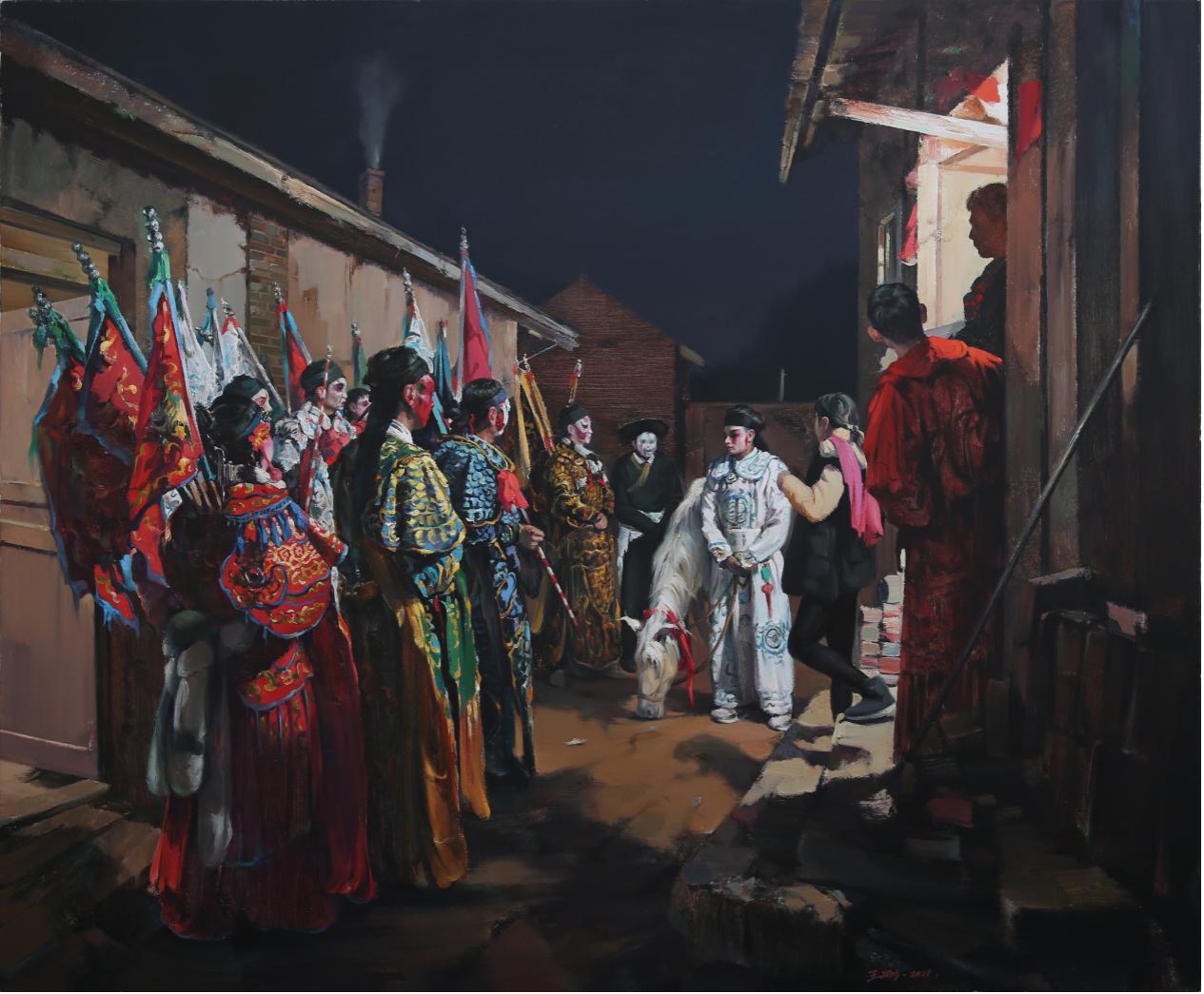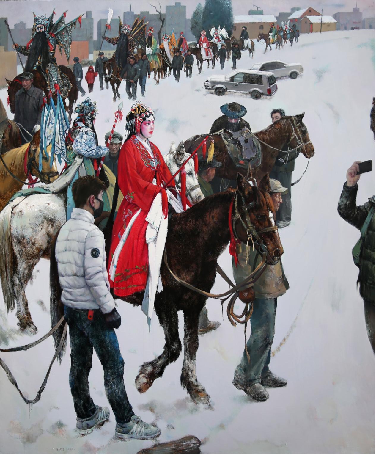 2022年油画《非遗传承之关中马社火》入选“陕西青年美术作品展”